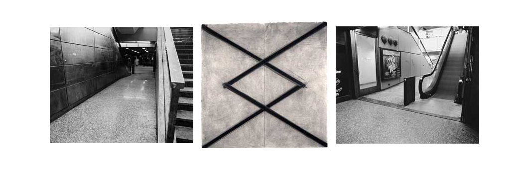 photographs and charcaol drawing on paper. each set approximately 300 cm across