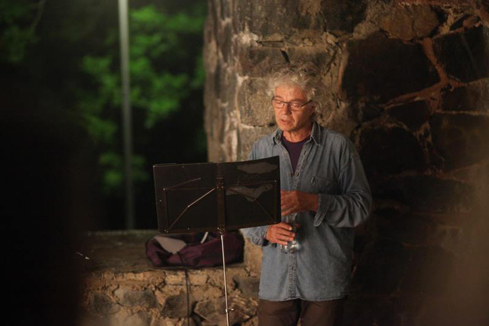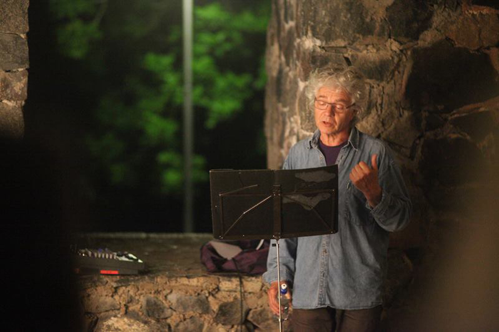 Reading poems.