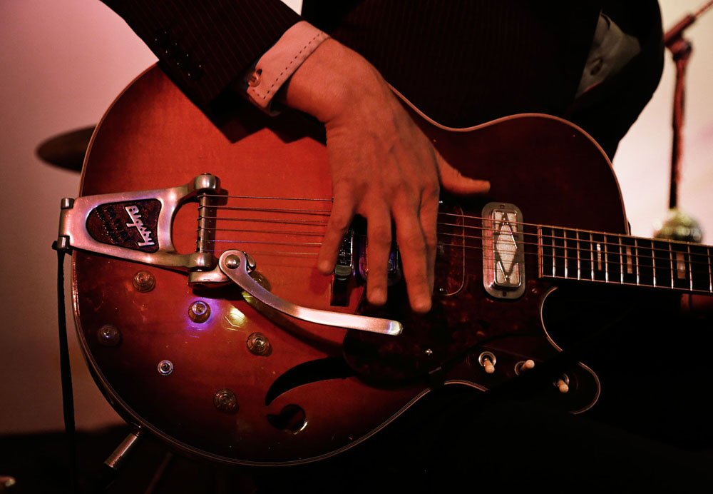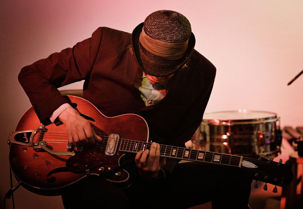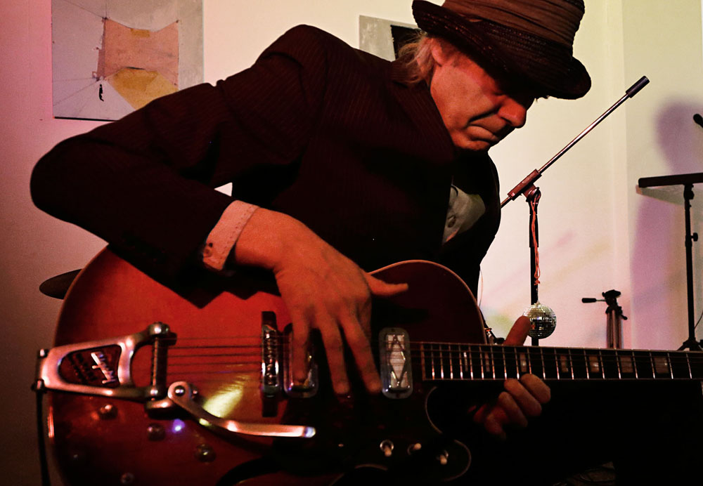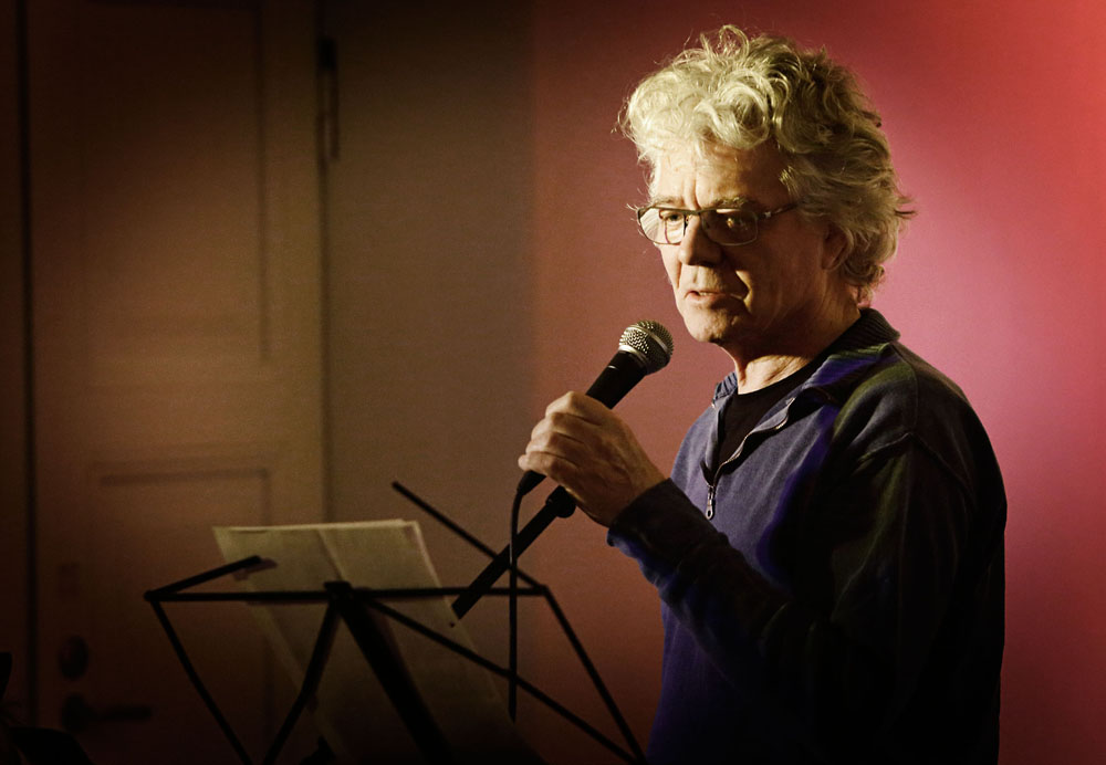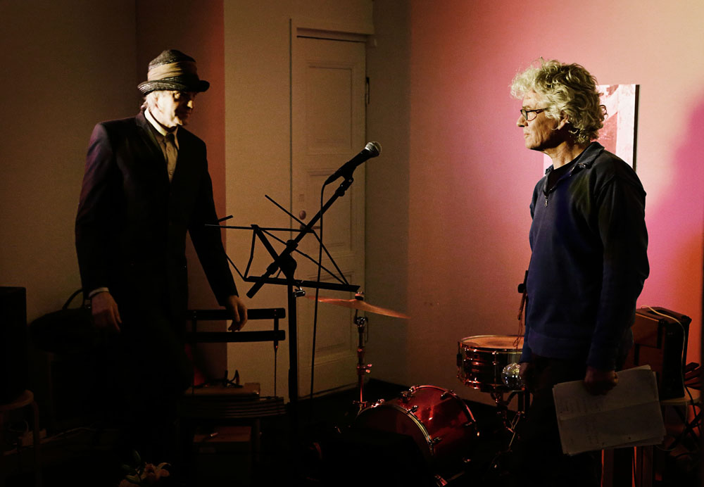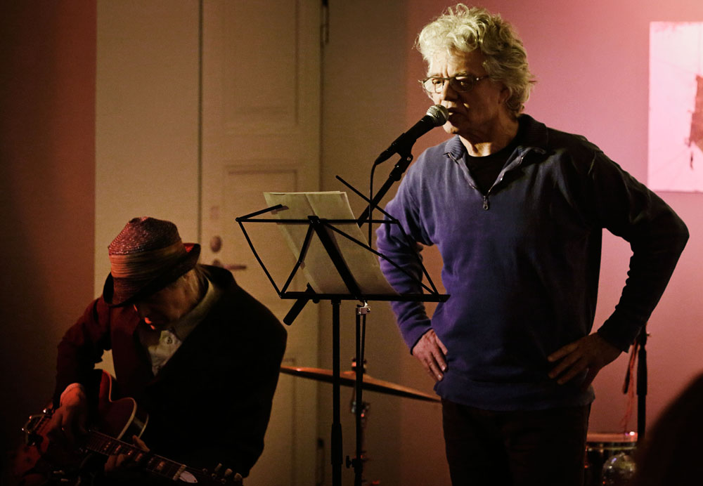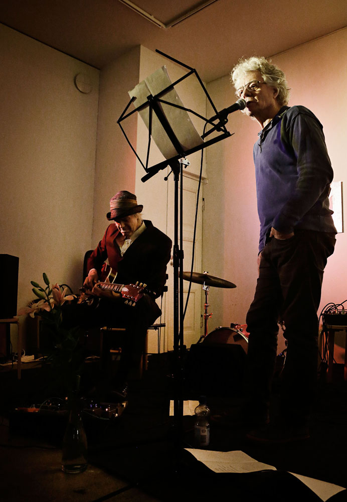 Oliver Whitehead and PK Keränen, with experimental sounds, on electric guitar with each poem.